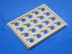 具有了減震、方便攜帶與運輸、綠色環(huán)保等特點,異形托盤采用的材料都為環(huán)保材料,從而節(jié)省了能源,產(chǎn)品工藝經(jīng)過生產(chǎn)設(shè)備將其達到一定厚度及干濕比,經(jīng)過轉(zhuǎn)模脫模等工序生產(chǎn)出異形托盤。